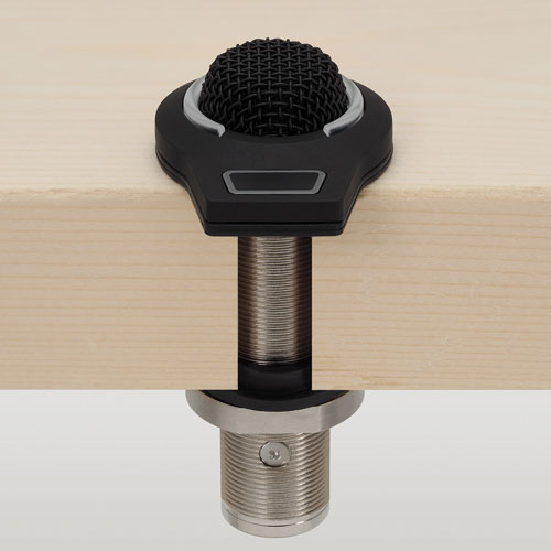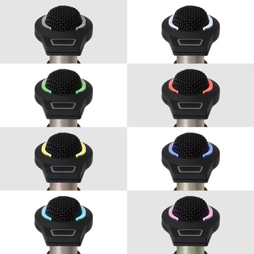 ES945O/FM5 全指向性電容式界面話筒配備了5針 XLRM 型輸出連接器和一個(gè)電容感應(yīng)式輕觸開關(guān),可增強(qiáng)對(duì)會(huì)議室裝置的控制。不僅可以將開關(guān)設(shè)置為在控制話筒靜音和收音之間的切換,還可以通過話筒的接點(diǎn)閉合來(lái)觸發(fā)外部設(shè)備,例如攝像頭或房間的照明系統(tǒng)。采用不顯眼設(shè)計(jì),可以安裝在桌面或控制面板上,以提供最佳的隱藏性,提供清晰而通透的收音,非常適合會(huì)議、錄音、監(jiān)聽和其他要求苛刻的收音應(yīng)用,而話筒頂部設(shè)有可見度高的雙態(tài)式 RGB LED 燈環(huán)(7種可選顏色 + 關(guān)燈),能顯示開啟/靜音狀態(tài)。