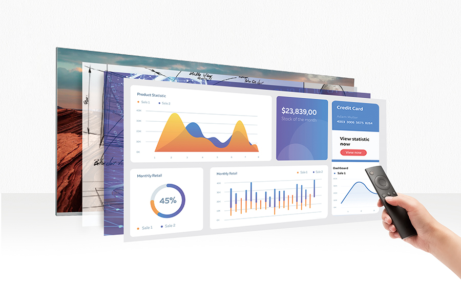 ① 超寬屏多內(nèi)容展示更靈活:與傳統(tǒng)16:9LED顯示屏相比,C系列寬屏增加了33%屏幕空間,通過(guò)此屏幕您可以看到更大幅的內(nèi)容,滿足更多需求,提升會(huì)議效率。